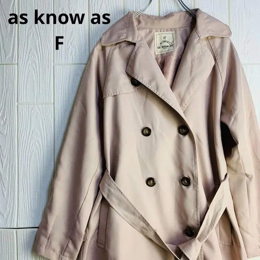 as know as 베이지 트렌치코트 어깨 너비 39cm 허리 리본 포함
