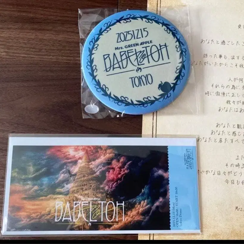 바벨탑 미세스 그린애플 도쿄 12/15 캔뱃지와 픽처 티켓