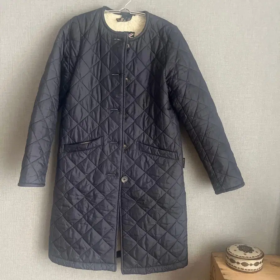 라벤햄 36 보아 안감 네이비 퀼팅 롱 코트
