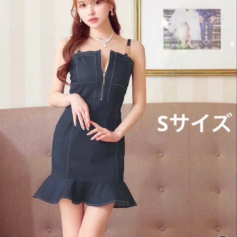 골드 체인 프론트 지퍼 데님 머메이드 미니 드레스 데님 드레스