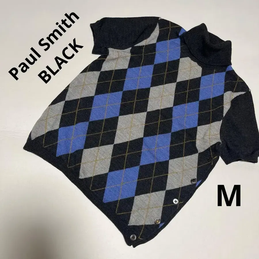 폴스미스 블랙 아가일 니트 터틀 반팔 그레이 사이드 버튼