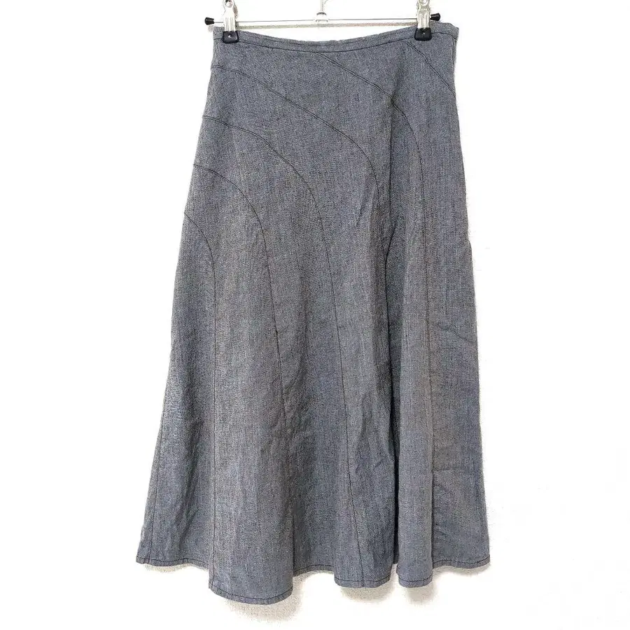 데님 소재의 플레어 스커트, 물결 모양 스티치 디자인이 특징입니다.