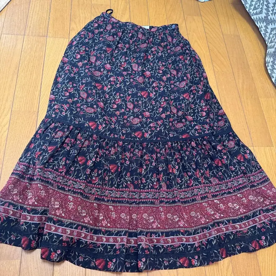 INGEBORG 꽃무늬 플레어 스커트 블랙/레드