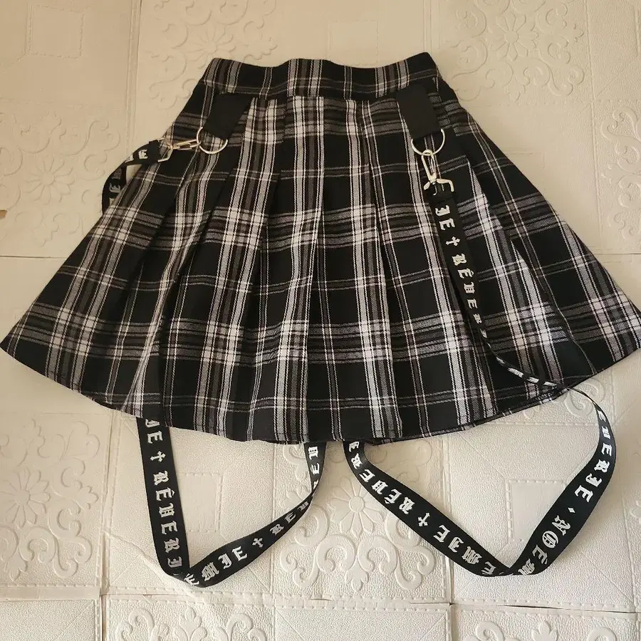 NOEMIE 미사용 블랙 화이트 체크 플리츠 스커트 S 노에미 스트랩