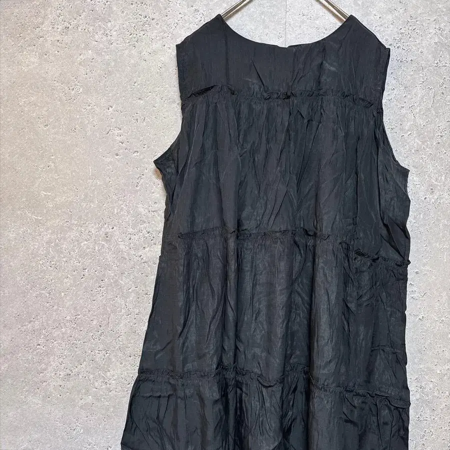 슬리브리스 티어드 원피스 블랙 광택감 레이온 귀여운 걸리시