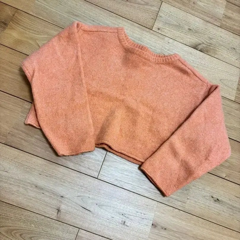 오렌지 크롭 니트 스웨터 긴팔