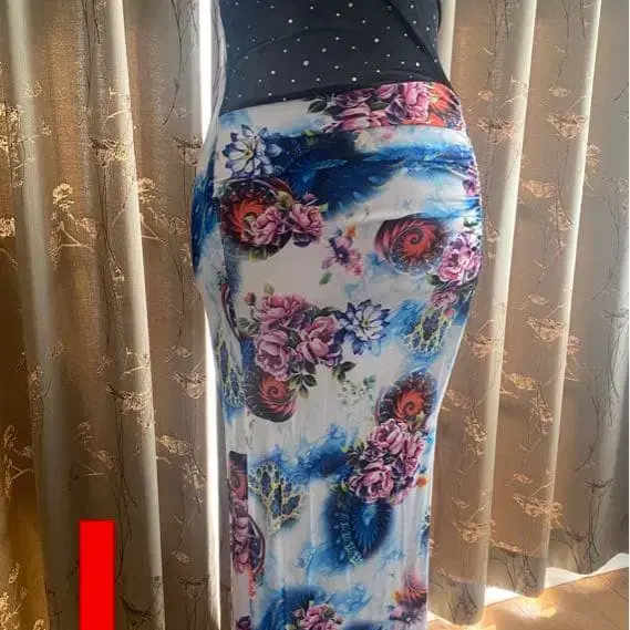 롱 드레스 타이트 핏 드레스 꽃무늬