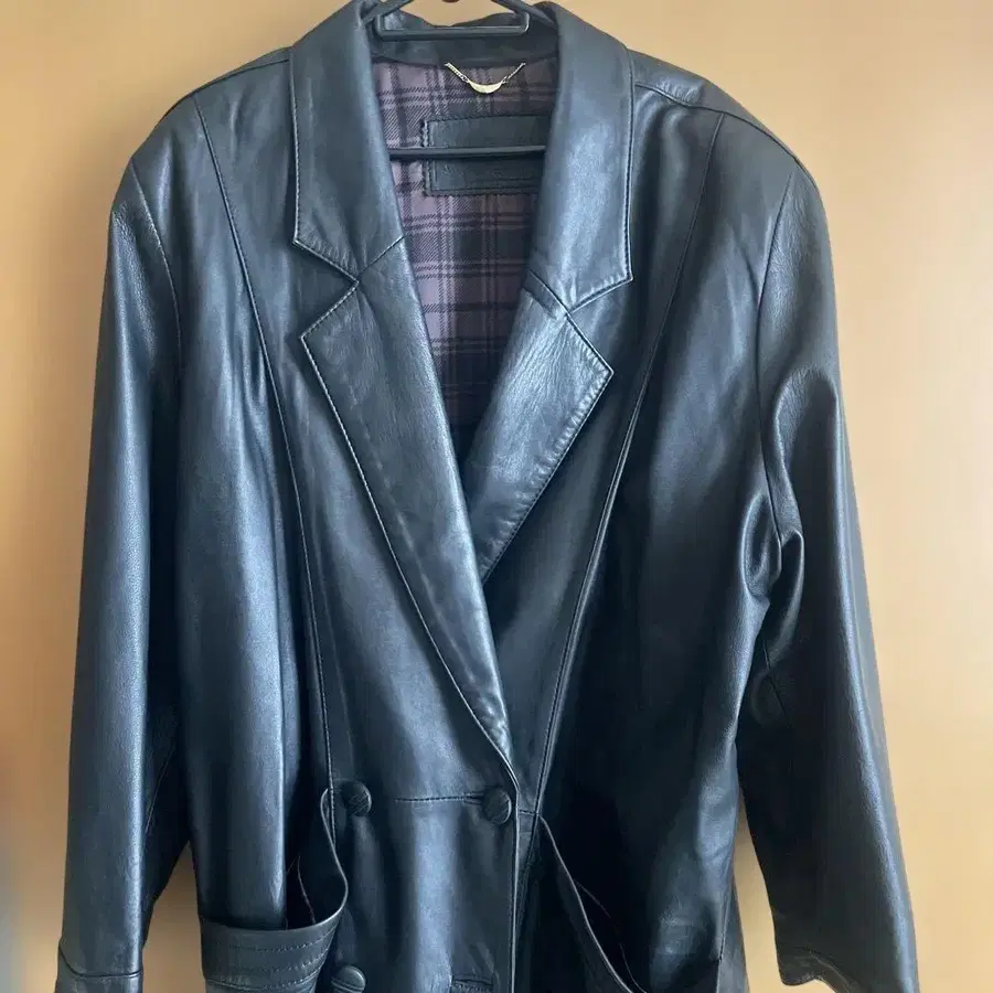 블랙 가죽 더블 브레스트 자켓
