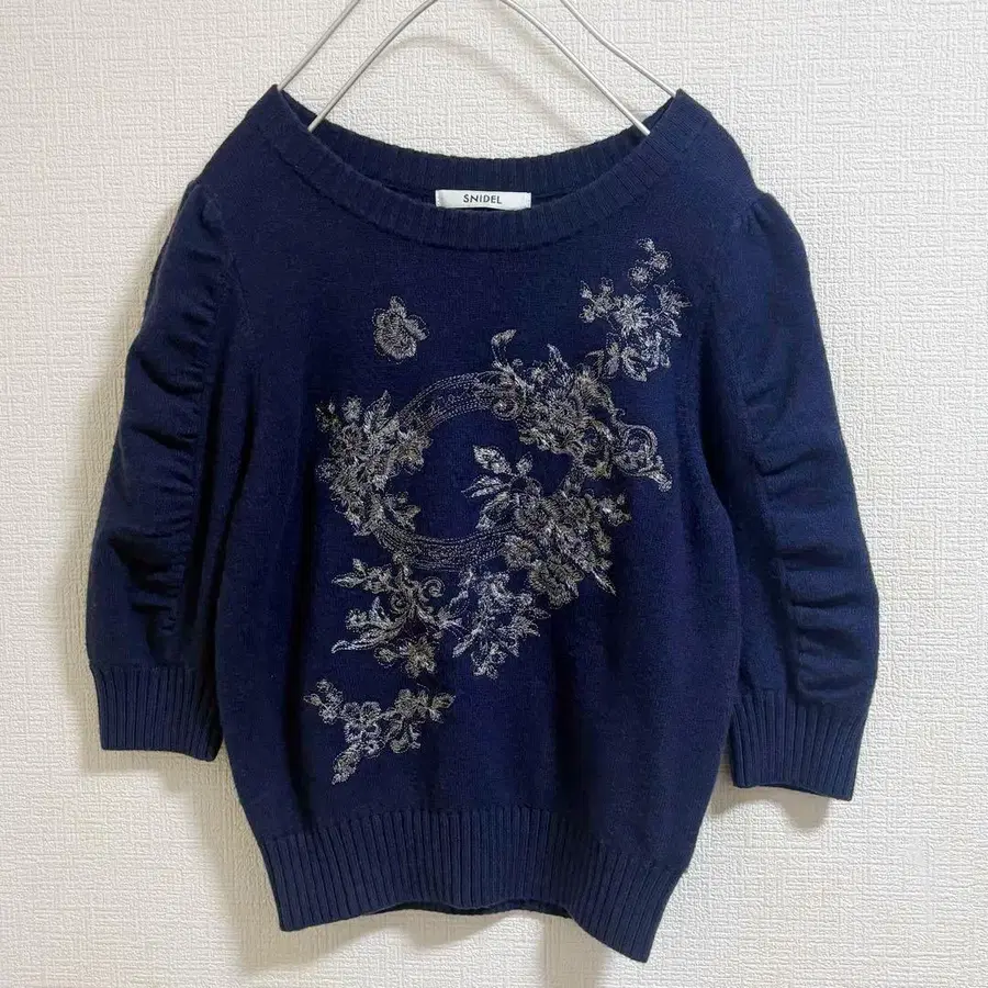 스나이델 니트 꽃무늬 자수 네이비 스웨터 멋짐