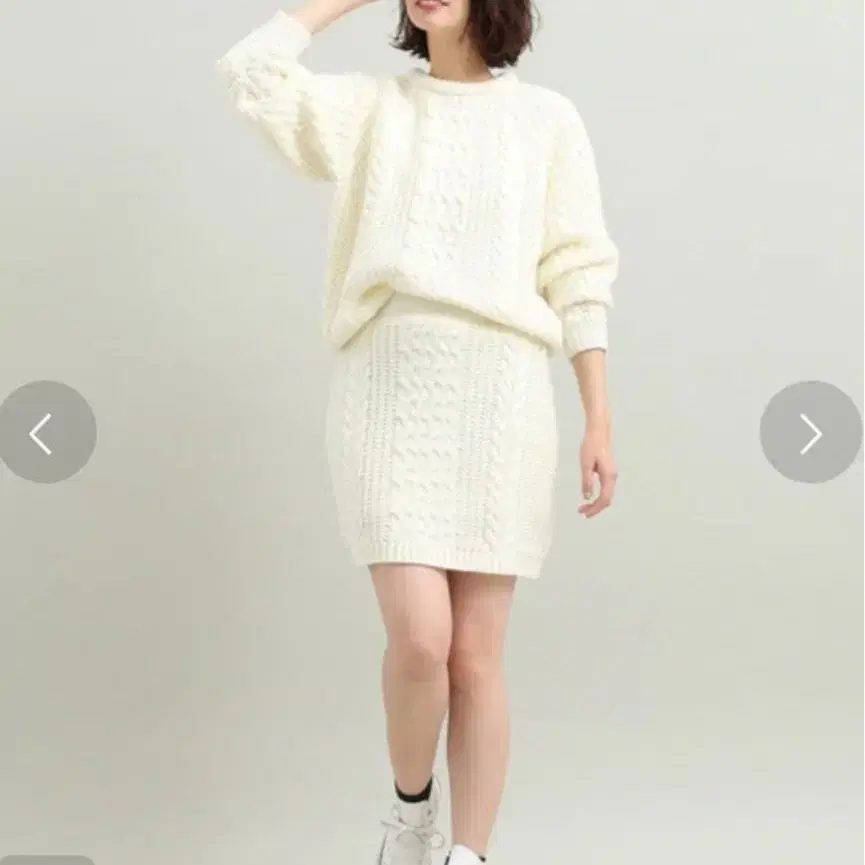 ViS 택 포함 아이보리 케이블 니트 스웨터 스커트 셋업