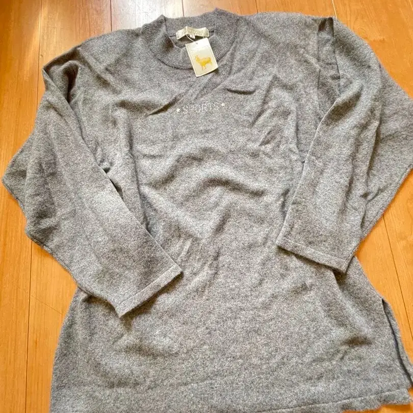 그레이 긴팔 니트 로고 자수 캐시미어 100% 미사용 새상품