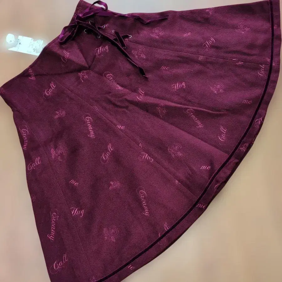 택 포함 미사용 엑시즈팜 와인 레드 플레어 스커트 리본 포함