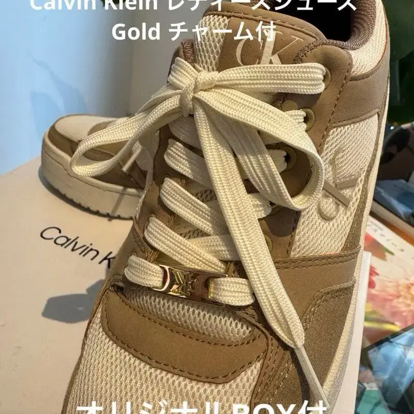 캘빈 클라인 베이지 화이트 스니커즈
