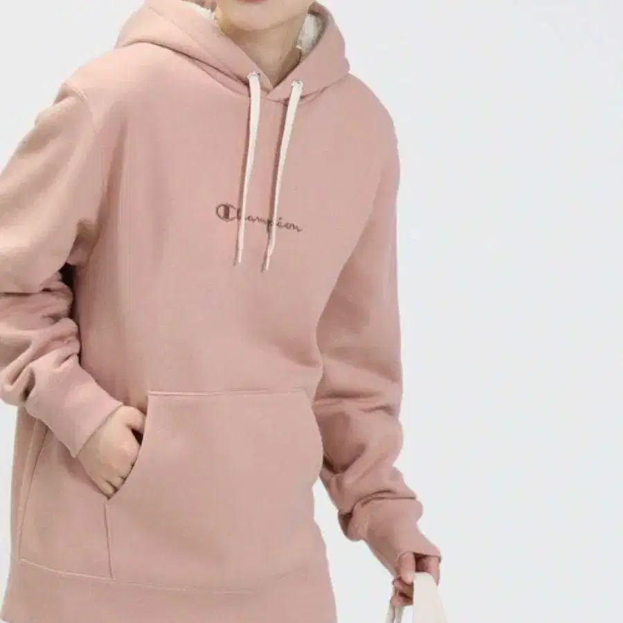 챔피온 풀오버 후드티 핑크 후드 부착 포켓 부착 속기모 보아