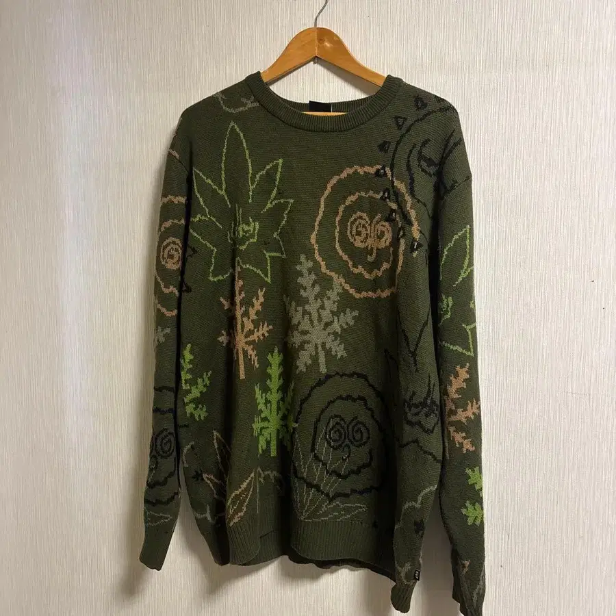 HUF 올오버 패턴 니트 스웨터 카키 개성있는 디자인 XL