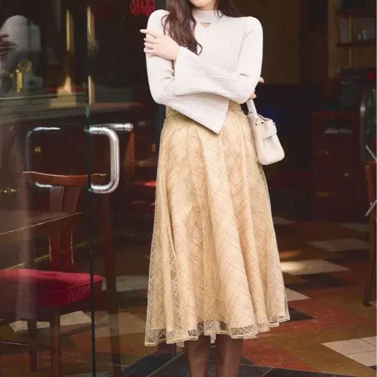 스팽글이 들어간 흔들리는 플레어 스커트. 화려한 느낌의 원단을 사용했기 때문에, 크리스마스 등 이벤트가 늘어나는 계절부터 연말까지 활약할 수 있는 아이템. 심플한 니트와 함께 입기만 해도 멋스러운 연출이 가능합니다. <소재> 스팽글이 들어간 튤 소재를 사용했습니다. <상세> 사양: 뒷면 지퍼, 안감 있음, 비침 있음 / 광택 있음 / 신축성 없음, 원단 두께: 얇은 소재. ※ 모델 착용 이미지의 경우, 빛의 조사 각도에 따라 실제 색감과 다르게 보일 수 있습니다. 색감은 상품 단독 이미지를 참조해 주세요. 모델번호: 121-5120001-040-18 NC5280