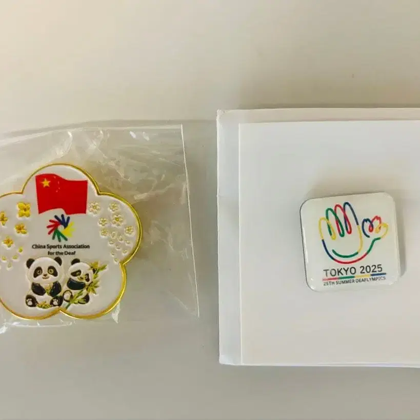 데프림픽 도쿄 2025 중국 팬더 핀 배지 & 일본 마그넷 배지 세트