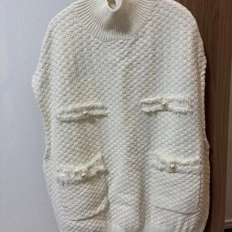 화이트 니트 베스트 포켓 부착 사이즈 1