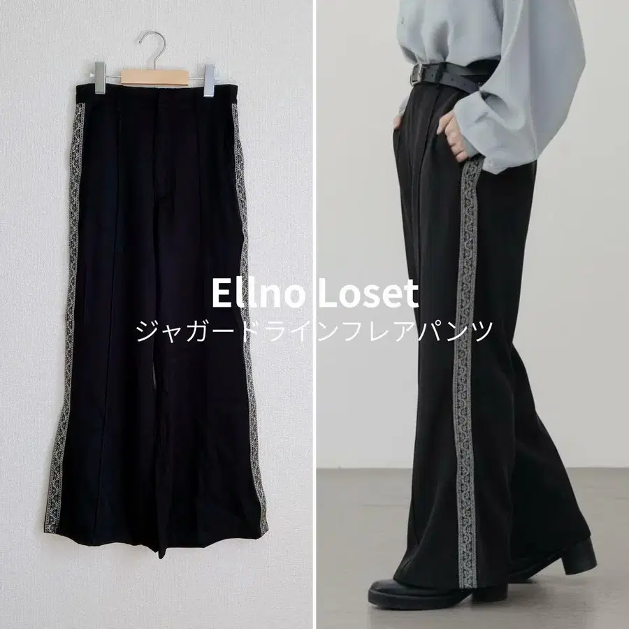 엘르 로제트 자카드 라인 플레어 팬츠 블랙 S 사이즈