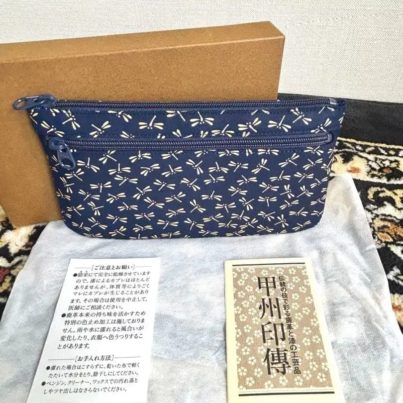 [ 코슈인덴 ] 미사용 새상품 잠자리 패턴 지갑 파우치 네이비 컬러