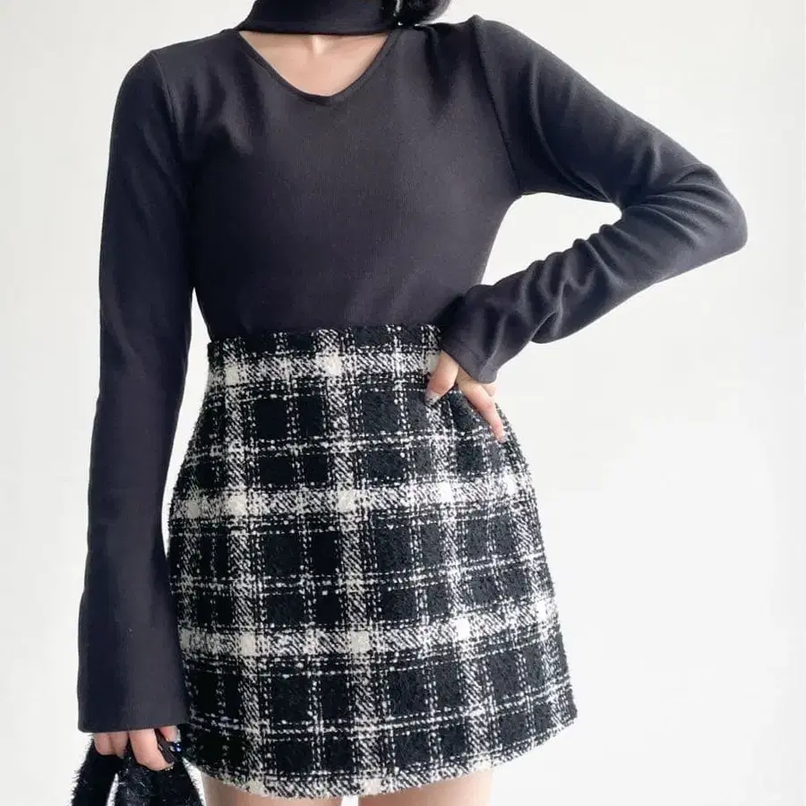 Heather 트위드 체크 미니 스커트 블랙