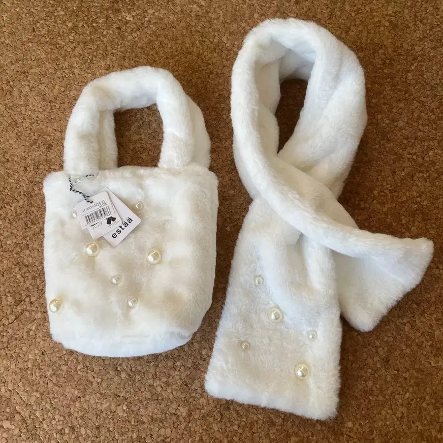 estaa 백 & 머플러 BIG 펄 화이트 화이트 퍼 크리스마스