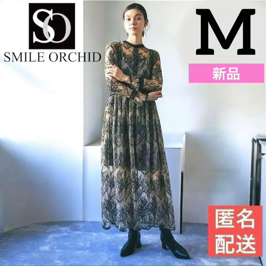 스마일 키드 블랙 자수 긴팔 원피스 하이웨스트 맥시 원피스