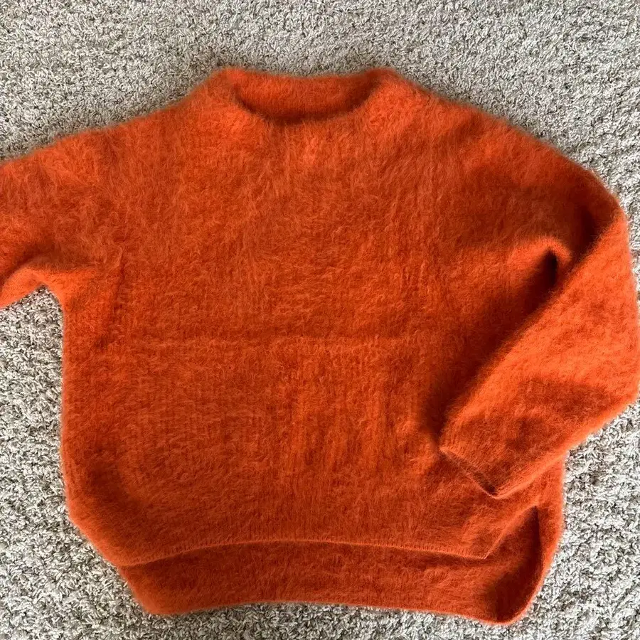 세모아쥬 오렌지 컬러 폭스모 100% 스웨터