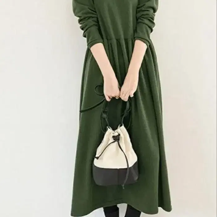 롱 원피스 아이보리 무지 면 울 슬리브리스 루즈핏 플레어