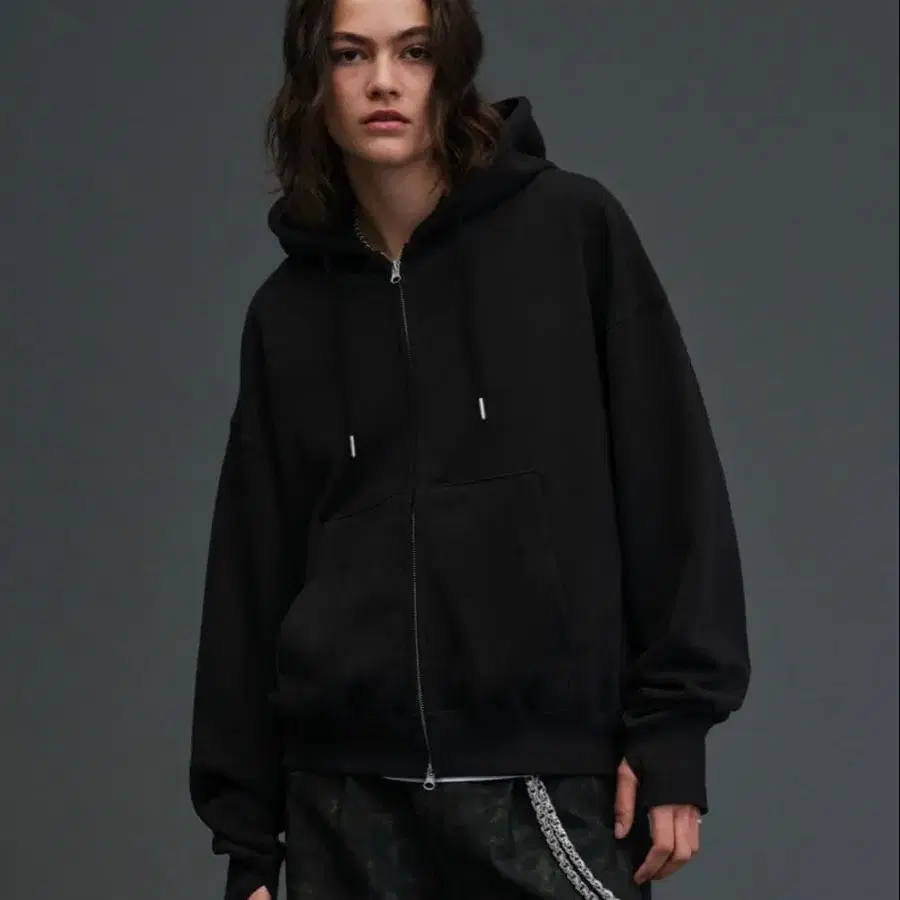 [ soerte ] 빈티지 짧은 기장 풀 집업 후드티 블랙 사이즈 1
