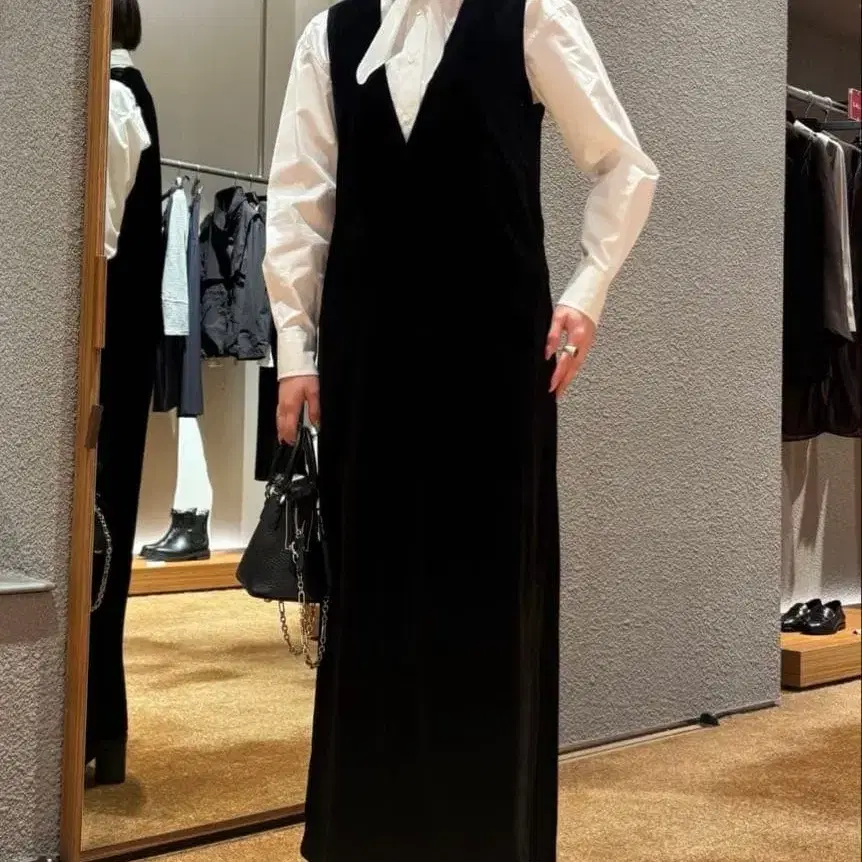 CABaN 소프트 벨로아 V넥 롱 원피스 블랙 49,500엔
