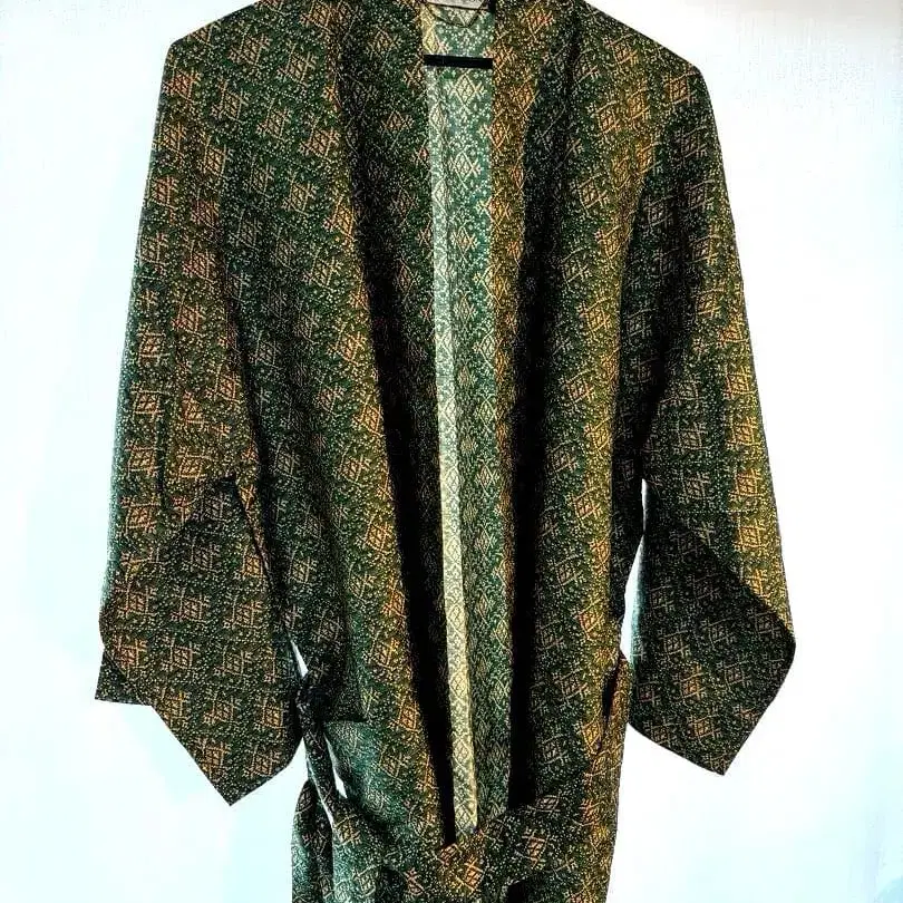 JIM THOMPSON 100% 실크 목욕 가운 그린 계열