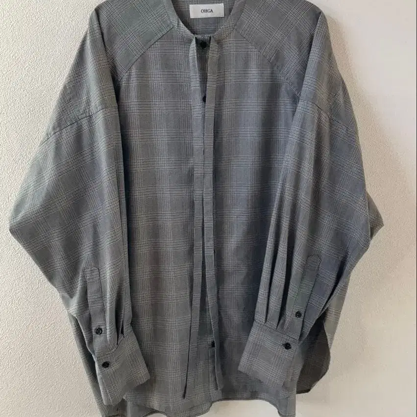 OHGA 오가 그레이 체크 무늬 보타이 셔츠