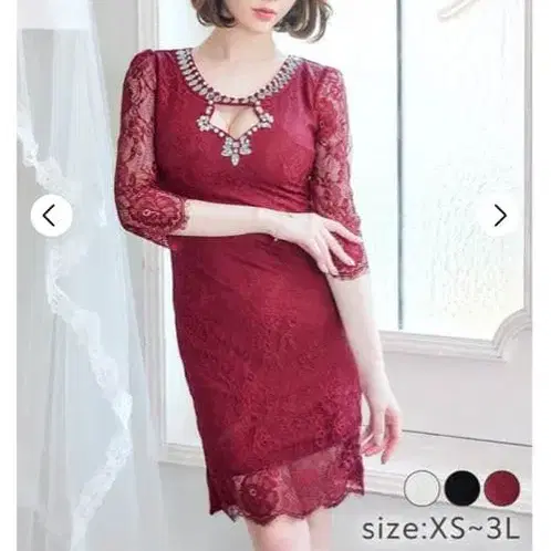 레이스 비즈 장식 와인 레드 드레스 XS~3L
