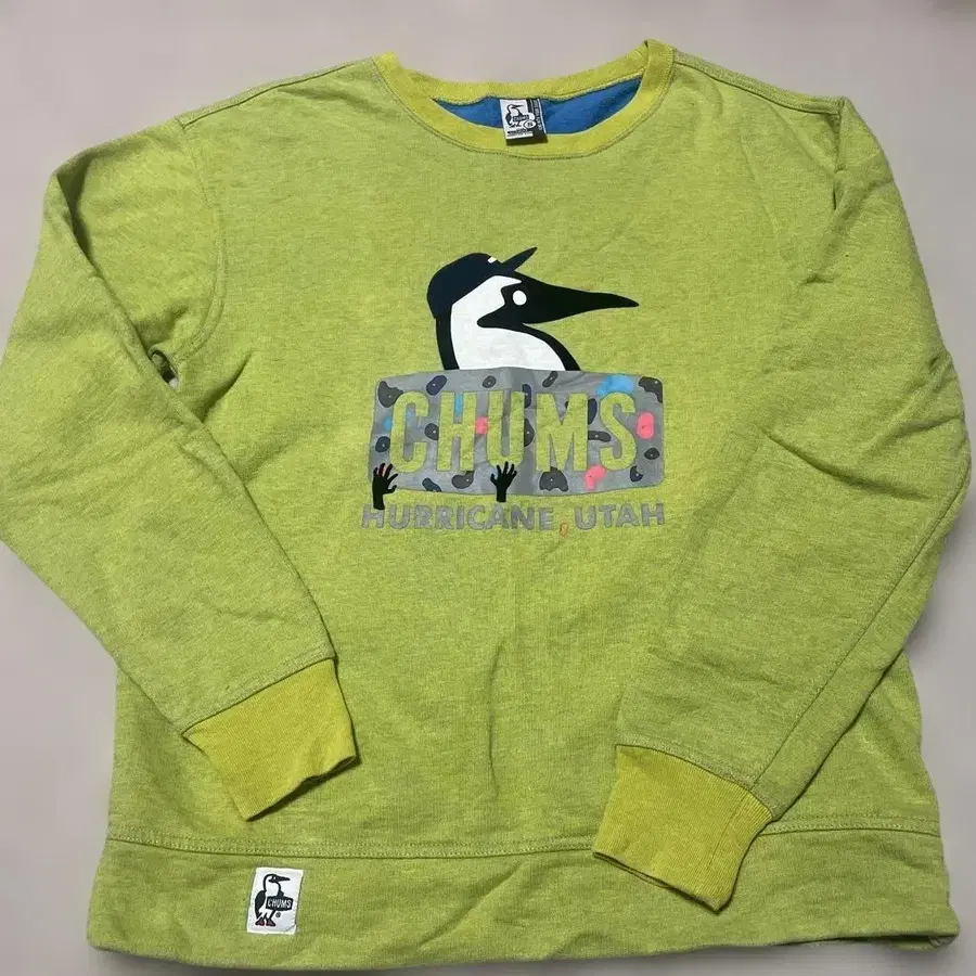 CHUMS 프린트 옐로우 그린 맨투맨 S 사이즈 트레이닝복