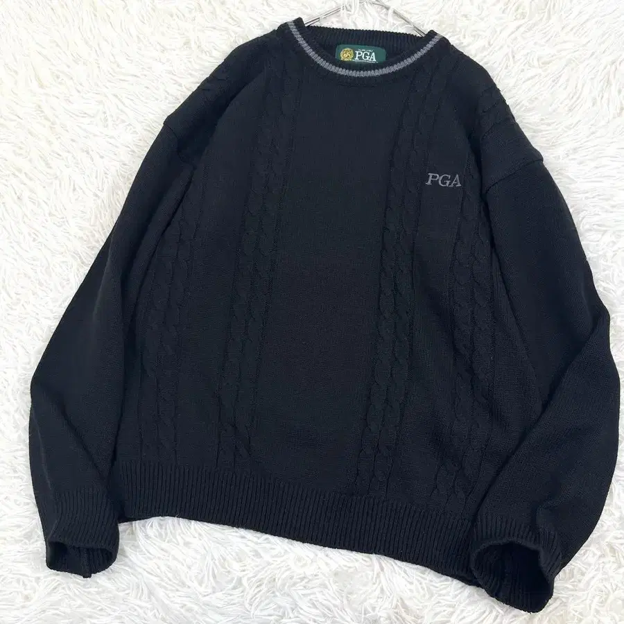 PGA 케이블 짜임 니트 스웨터 로고 자수 골프 블랙