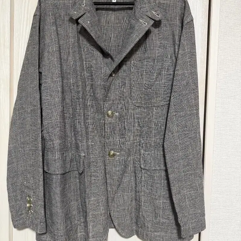 글렌체크 워크 자켓 코튼 린넨 엔지니어드 가먼츠
