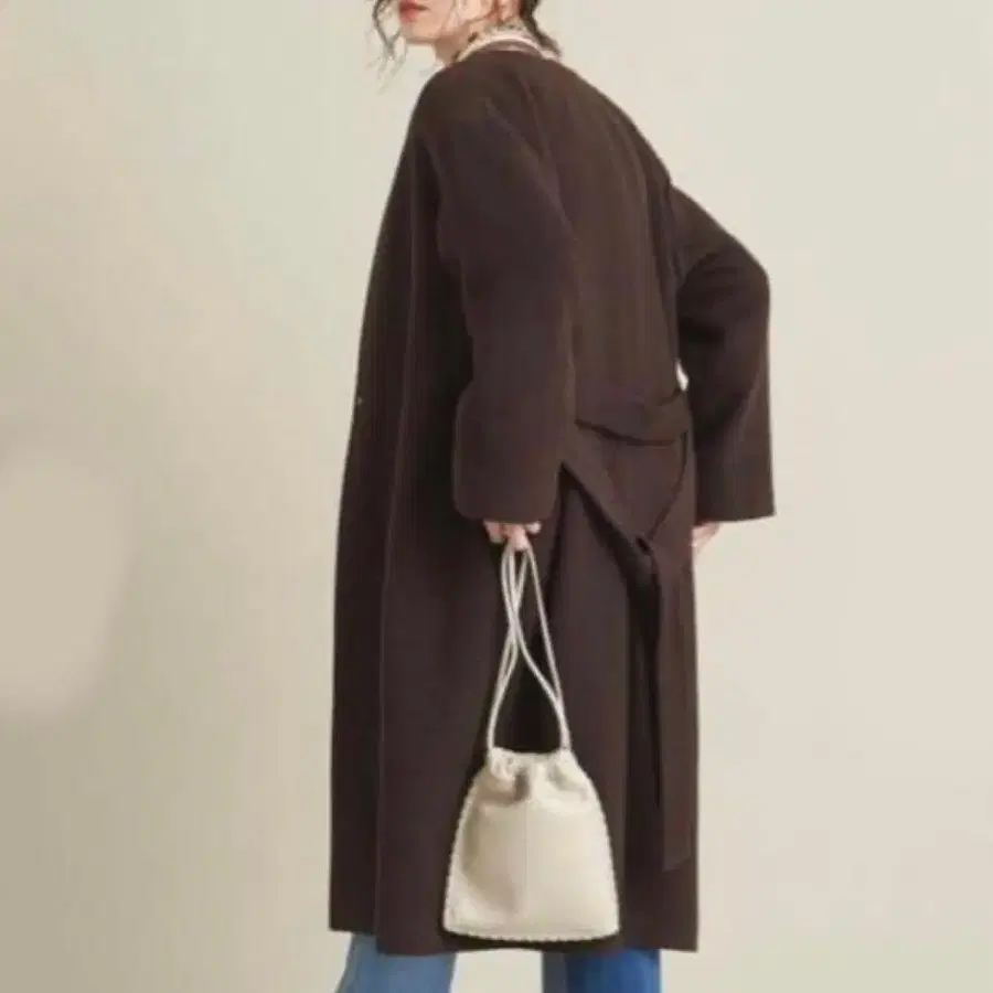 새상품급 뷰티&유스 MANTECO 노카라 벨트 롱 코트 브라운 XS
