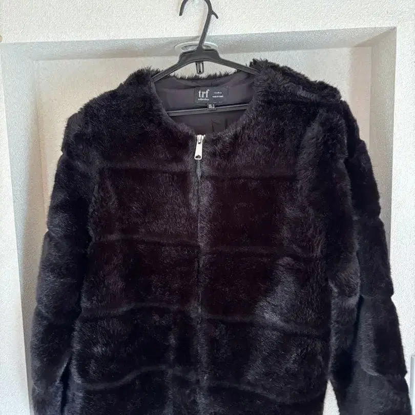블랙 퍼 집업 아우터