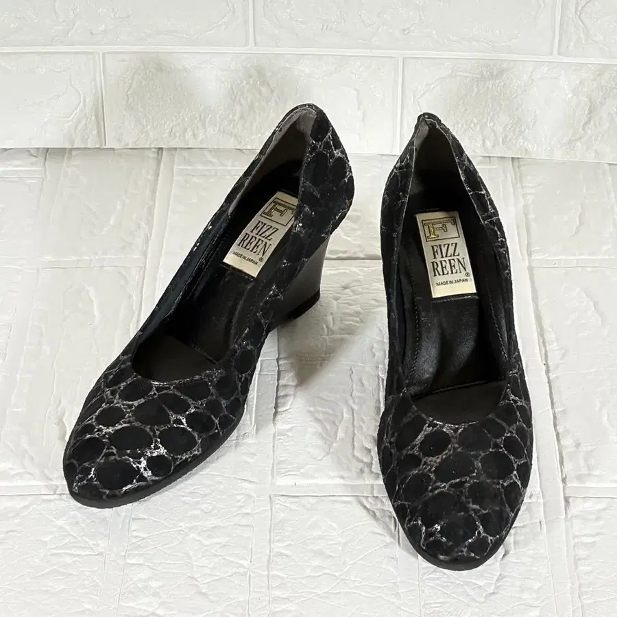 자동 번역되었어요. 원문보기FIZZ REEN (피즈린)의 블랙 컬러 엠보 디자인 웨지솔 하이힐 펌프스입니다.