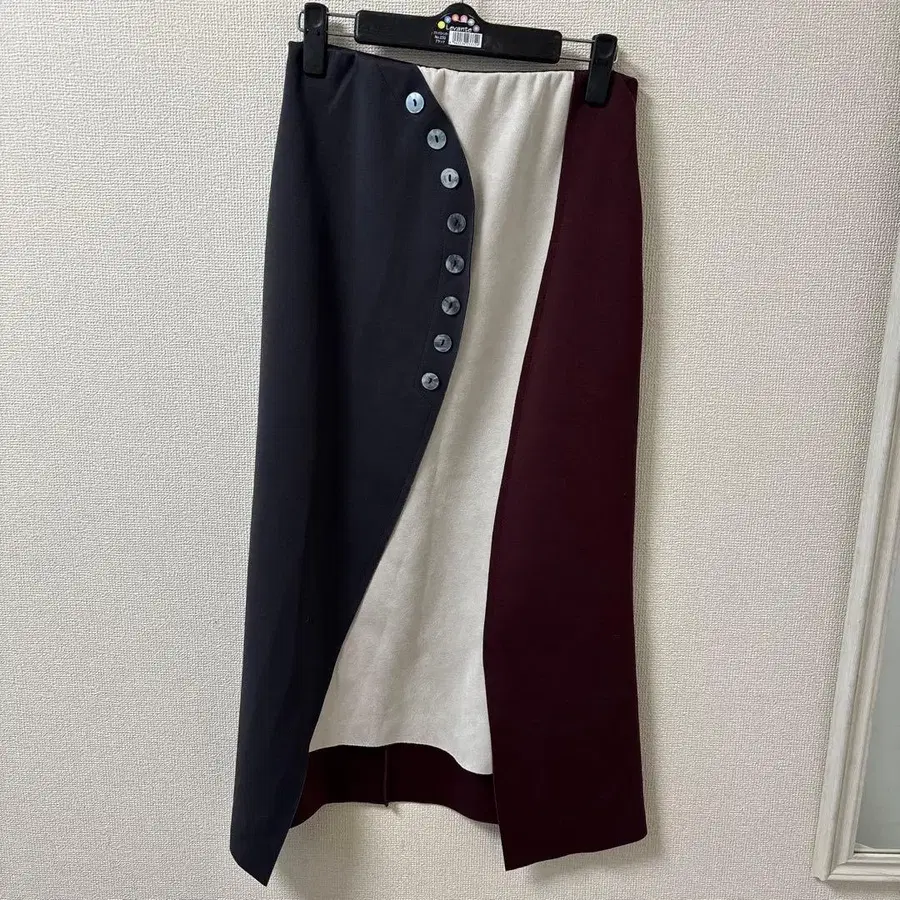타이트 스커트 버튼 포함 다크 그레이/크림/버건디 YAMADAYA