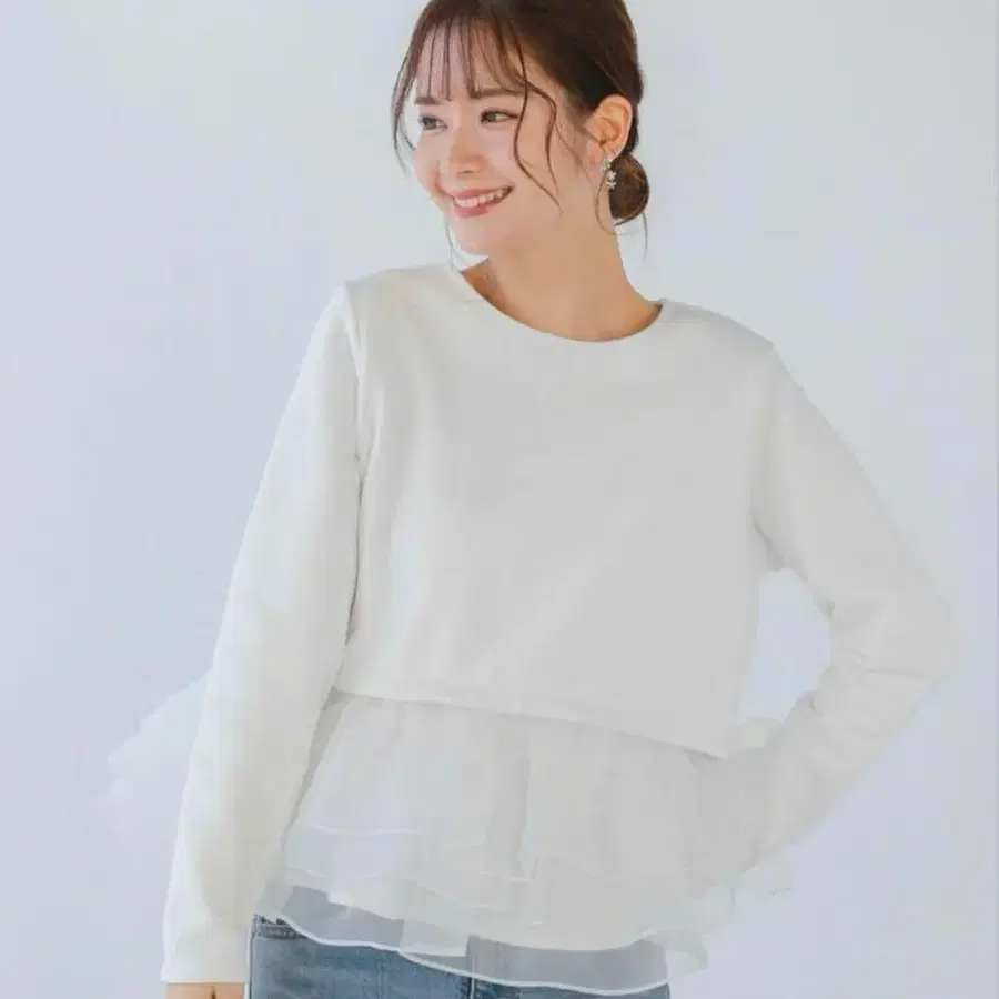 fitmore 핏모어 오간자 프릴 레이어드 맨투맨