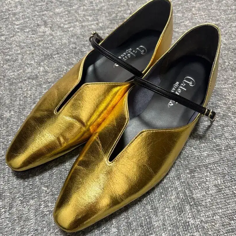 • ANTERIMA 골드 플랫슈즈 리본 포함