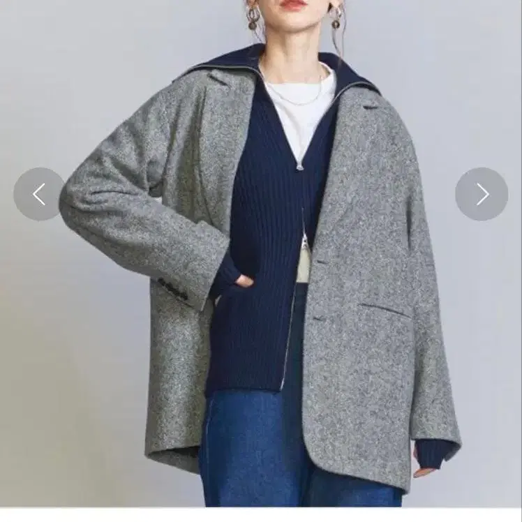 아우터처럼 연출할 수 있는 오버 자켓 ■ 디자인 남성용 자켓 같은 분위기의 테일러드 자켓. 약간 오버 스펙으로 안에 껴입기 쉽도록 어깨를 살짝 드롭시키고, 내추럴한 실루엣으로 완성했습니다. 너무 과하지 않게, 가볍게 걸칠 수 있는 소프트한 착용감이 매력입니다. 코트 앞의 아우터로 활용할 수 있는 아이템입니다. ■ 소재 컬러 네프가 들어간 살짝 기모감이 있는, 폭넓은 헤링본 무늬. 방모 울 혼방 세미 트위드 소재입니다. ■ 코디네이트 두꺼운 니트도 안에 입기 쉬운 것이 포인트입니다. 집업 세일러 니트를 맞추고, 빈티지 느낌의 데님을 맞춘 레트로한 코디도 추천합니다.