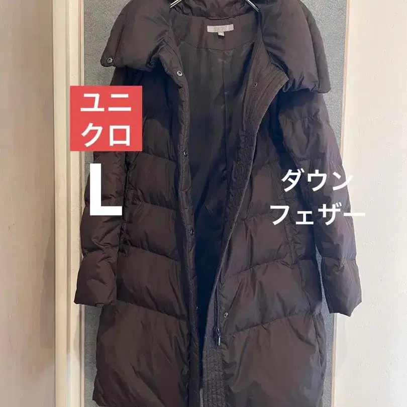 UNIQLO 브라운 후드 부착 다운 롱 코트