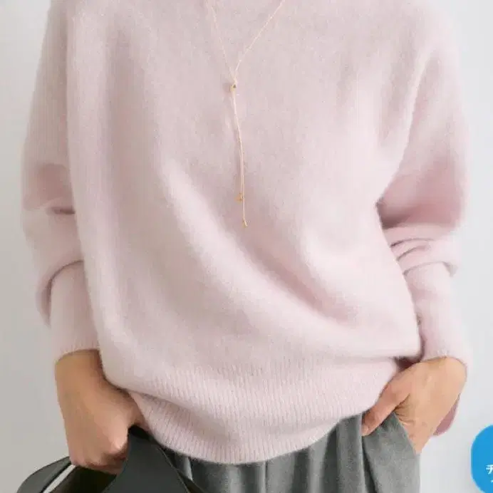 리브 드와 헤어리얀 보트넥 니트 핑크