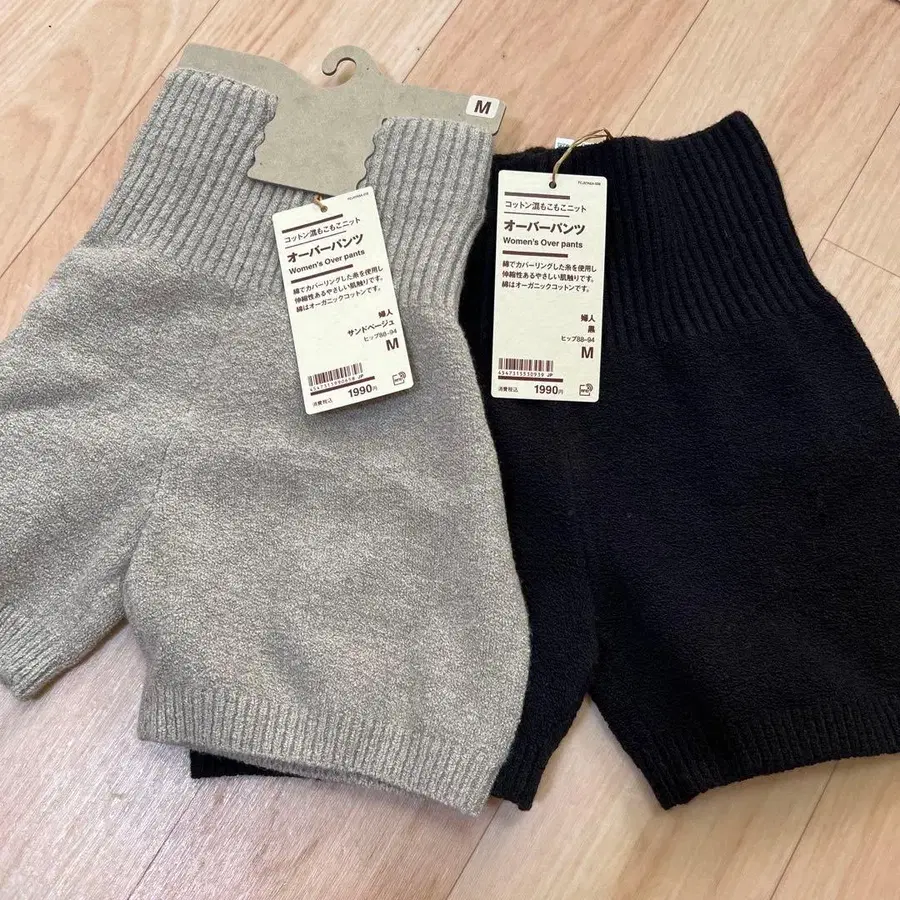 미사용 새상품 무인양품 M 코튼 혼방 복슬복슬 니트 오버 팬츠 2개 세트
