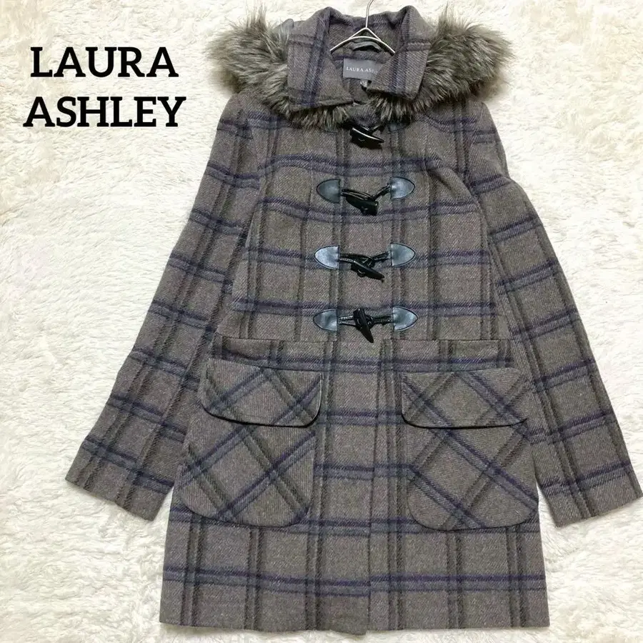 로라 애슐리 더플 코트 36 체크 무늬 퍼 토글 버튼