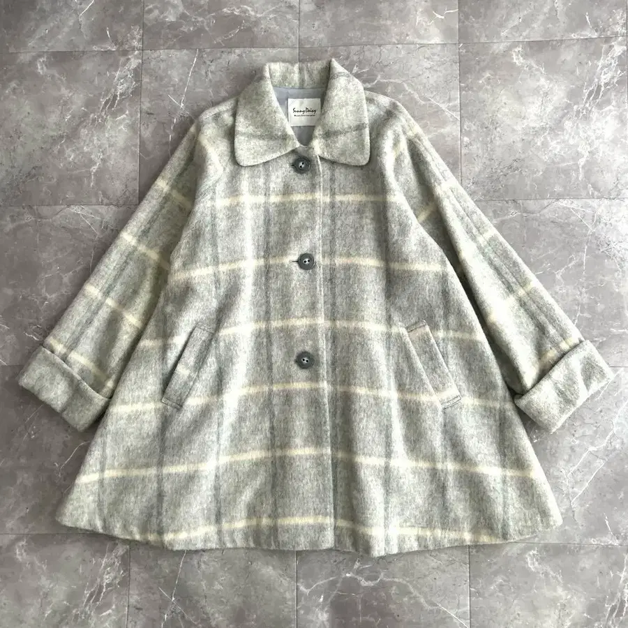 써니 데이지 체크 무늬 울 코트 텐트 라인 코트 래글런 소매