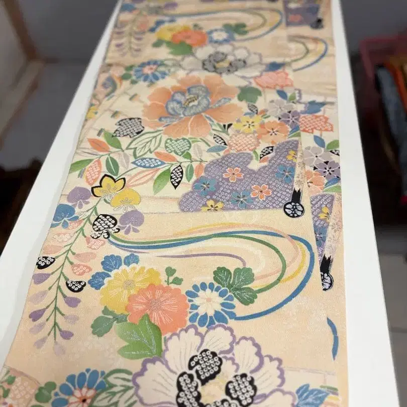 Y 앤티크 일본 의류 기모노 오비 전 통 패턴 꽃 무늬 순수 실크